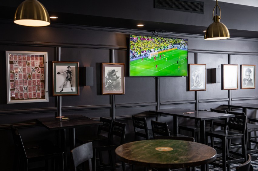 Behind the scenes, the layout was completely reworked to improve flow and operational efficiency. The new central bar becomes the room’s organising element, tightening circulation while enhancing staff visibility across the floor. Acoustic treatments, layered lighting, and strategically zoned seating areas help the space shift effortlessly from high-energy events to relaxed social use throughout the week. It’s a sports bar designed not just for spectacle, but for longevity—durable, inviting, and crafted to support the evolving identity of the Camelia Grove Hotel as a revitalised neighbourhood institution.